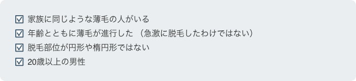 - 対象:成人男性(20歳以上)の壮年性脱毛症患者