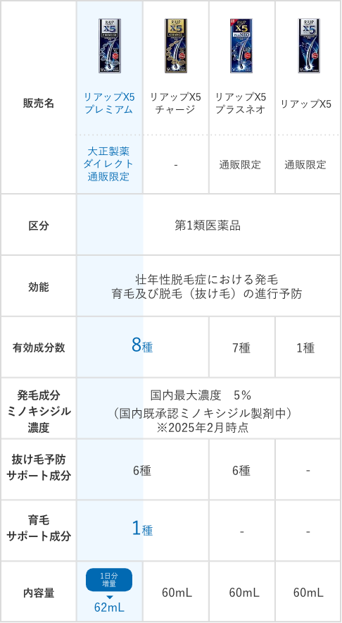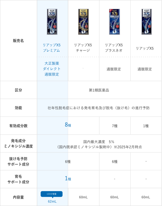 | 販売名 | リアップX5プレミアム | ||||||||||||||||||