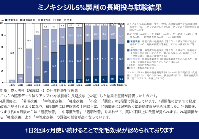 こちらの臨床データはリアップX5を被験者に長期投与(52週)した結果を医師が評価したものです。