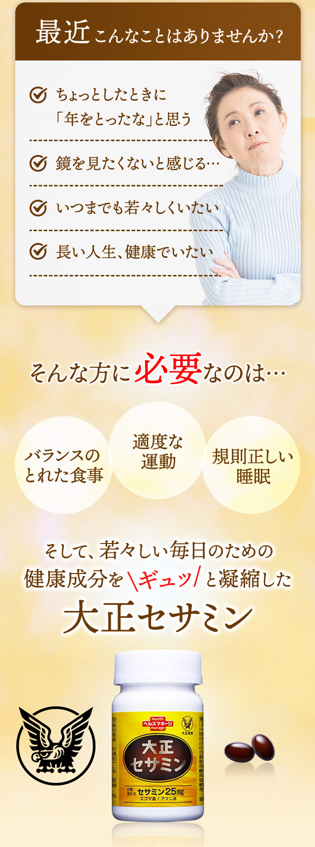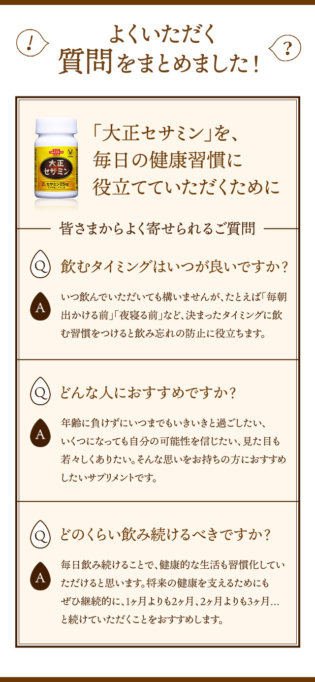 また、「毎月1本お届け定期コース」から「大正セサミン3ヶ月おまとめ定期コース」へのご変更もお電話にてご相談できます。