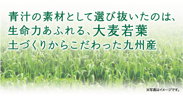 青汁の素材として選んだのは生命力あふれる「大麦若葉」。鉄分や葉酸、ビタミンB2、食物繊維など、健康維持に大切なさまざまな栄養素を含んだ健康素材です。しかも、一般的な野菜と比べて、それらの栄養価が高いという特徴があります。