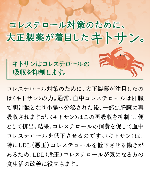ヘルスマネージ大麦若葉青汁 <キトサン>は、コレステロールの吸収を抑える「キトサン」を配合。実際に試験をした結果、毎日続けて飲むことで、4週間後にはLDL(悪玉)コレステロールが下がるという結果が得られました。また摂り続けることをやめてしまうと、LDL(悪玉)コレステロールの数値が摂取前付近の数値まで上がることも報告されています。
